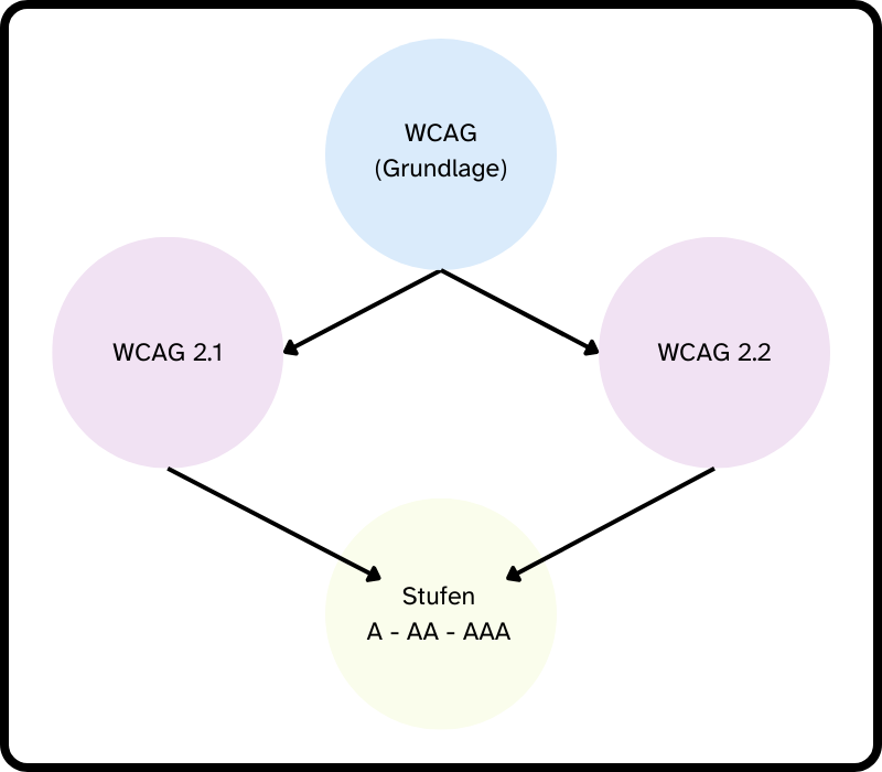 Die WCAG 2.2 baut darauf auf und ergänzt weitere Erfolgskriterien, um die Benutzerfreundlichkeit und Zugänglichkeit – vor allem für Personen mit kognitiven Einschränkungen und motorischen Behinderungen – noch stärker zu verbessern.